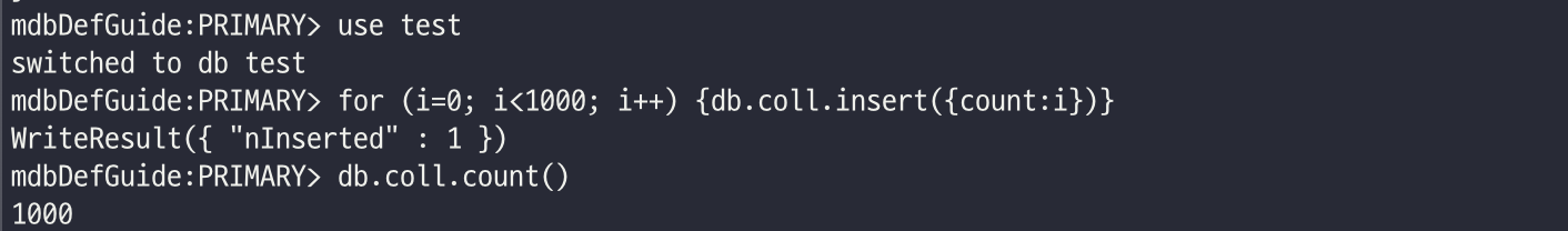 이는 _id가 mdbDefGuide인 복제 셋 프라이머리에 연결됐음을 뜻한다